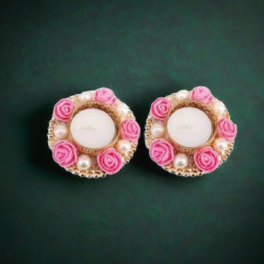 Illuminate your home with the enchanting glow of our Floral Tea Light Holder. This beautifully crafted tealight holders features a delicate metal design adorned with vibrant pink satin roses and shimmering pearls. Perfect for creating a romantic and festive atmosphere, this tealight holder is a must-have for any special occasion.